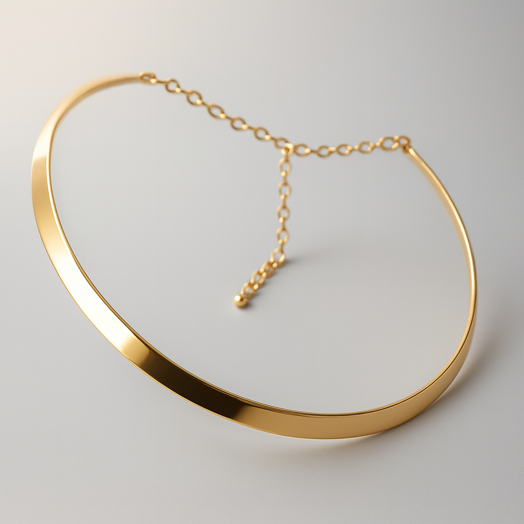 A Choker Luxe é a escolha perfeita para quem deseja um acessório sofisticado e impactante. Com um design moderno de camadas rígidas em tom dourado, ela transmite elegância e personalidade. Seu acabamento espelhado reflete a luz de forma deslumbrante, tornando-a ideal para ocasiões especiais ou para dar um toque de glamour ao look diário. Ajustável e confortável, é um must-have para quem ama moda e estilo.