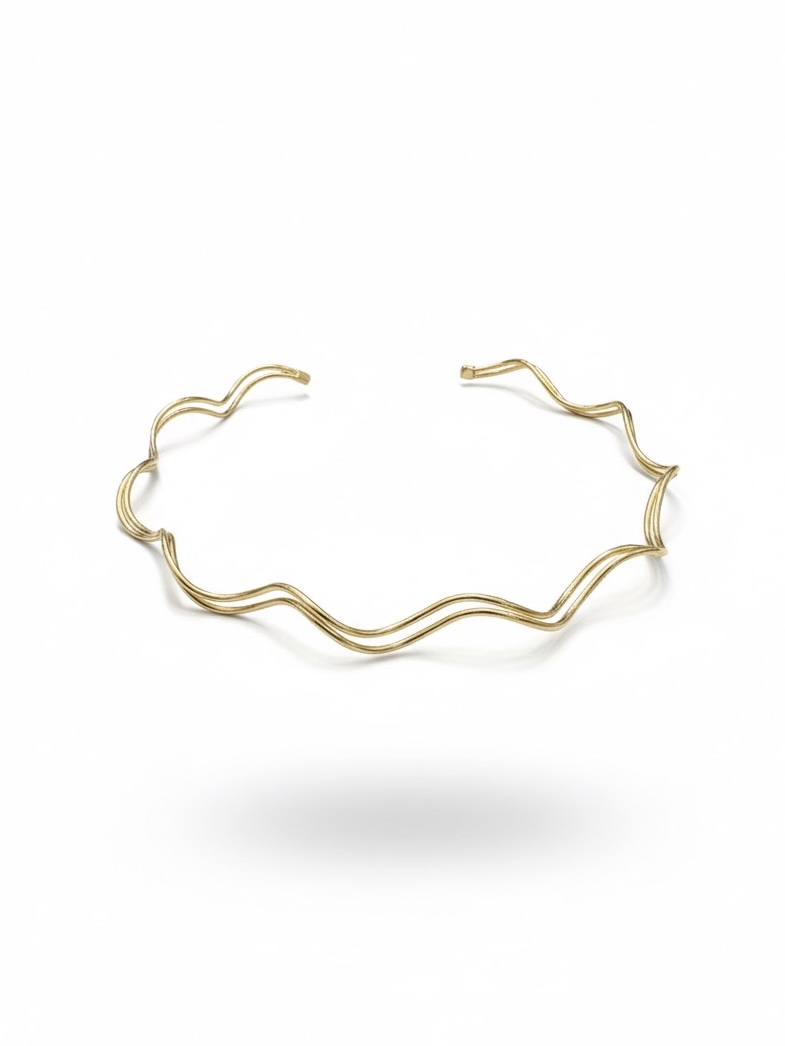 Inspirada no movimento fluido das ondas, a Choker Ondas é um acessório sofisticado e moderno. Seu design ondulado em metal dourado confere um toque de leveza e elegância, ideal para complementar produções tanto casuais quanto refinadas. Com um acabamento brilhante e estrutura ajustável, essa peça é perfeita para quem busca um visual autêntico e cheio de personalidade.